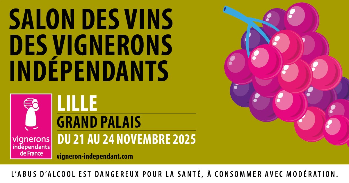 Nous avons le plaisir de vous annoncer notre participation au Salon des Vignerons Indépendants de Lille, qui se tiendra au Grand Palais du 21 au 24 novembre 2025.
