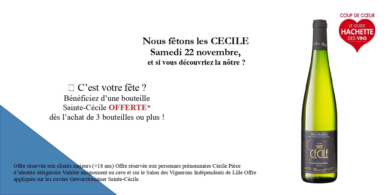 → Une bouteille Sainte-Cécile OFFERTE dès l’achat de 3 bouteilles ou plus.