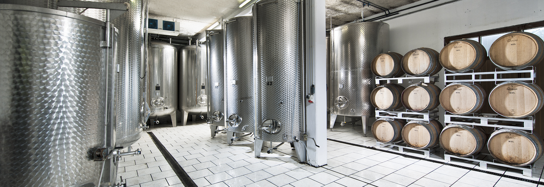 - La cuverie sous contrôle de température permet des fermentations régulières dans le but de conserver au maximum les arômes.